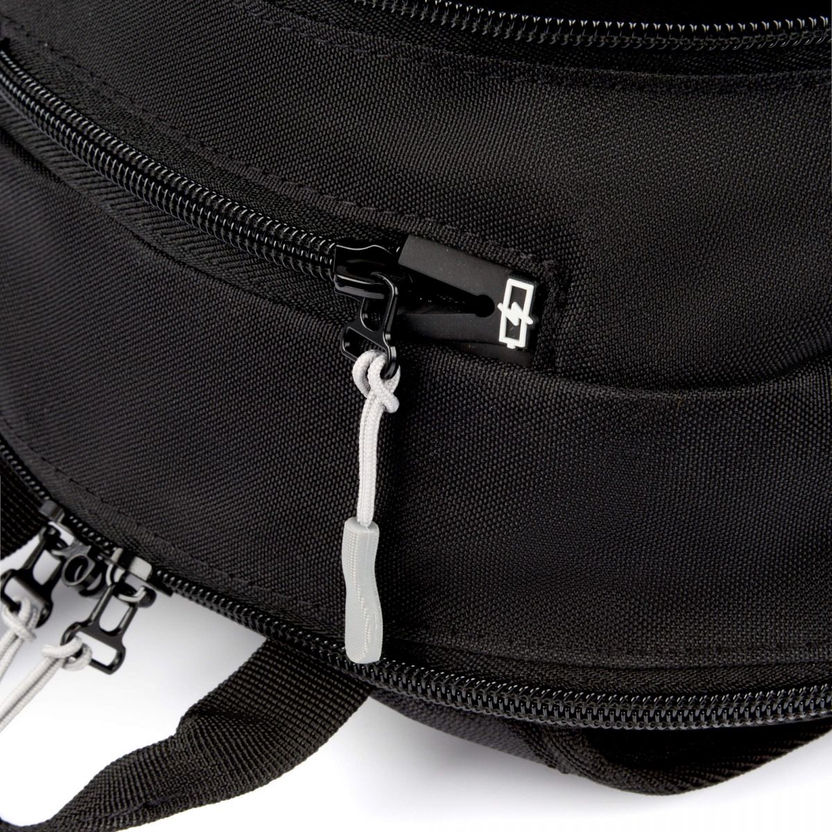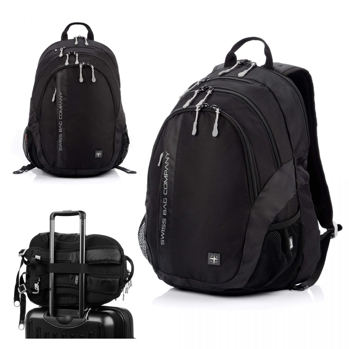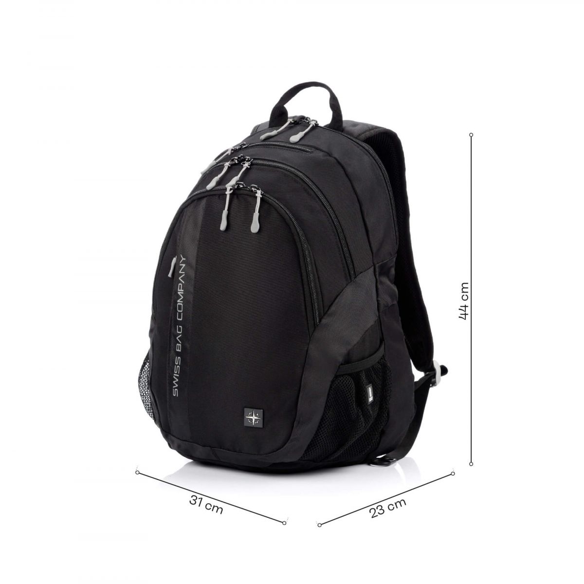 The Thun is a classic laptop backpack, perfect for college or work. It features three large zippered compartments. The first, reinforced at the back, easily accommodates a 15.6-inch laptop. The second is perfect for books or clothes. It also features a pocket for a phone or audio device with a rubber zipper cover that allows you to store headphones. The third compartment can be used as an organizer for documents, keys, wallet, pens, etc. The backpack's functionality is enhanced by two side pockets and one front pocket. It has ventilated, adjustable shoulder straps, so even when fully loaded, you can still carry it comfortably. Two zippers on the back allow the backpack to be conveniently and securely attached to the handle of a suitcase.