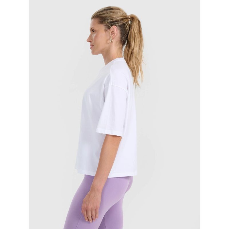 The 4F women's oversized T-shirt is the perfect blend of style and everyday comfort. The loose fit allows for complete freedom of movement, while the soft cotton jersey ensures all-day comfort. A subtle print on the front gives the piece a fashionable, urban feel.