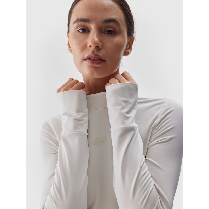 Thermal underwear is made of synthetic material, ensuring durability and easy care. Thanks to the addition of 10% elastane, the material is stretchy and fits comfortably. This women's thermal top features quick-drying fibers that help wick moisture away from the body. The stand-up collar protects against the cold. It works best as a warming second layer , worn directly over a thermal top or under a jacket, especially on cool and cold days.