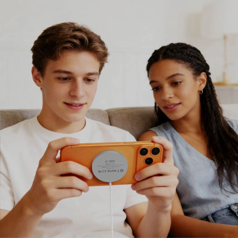 The Tech-Protect A50 is a compact inductive charger with a MagSafe magnetic mount, supporting the latest Qi2.2 standard with a maximum output of 25W. Built-in magnets ensure a precise fit to your phone every time, ensuring a stable connection and optimal charging performance without the need for tedious device positioning.