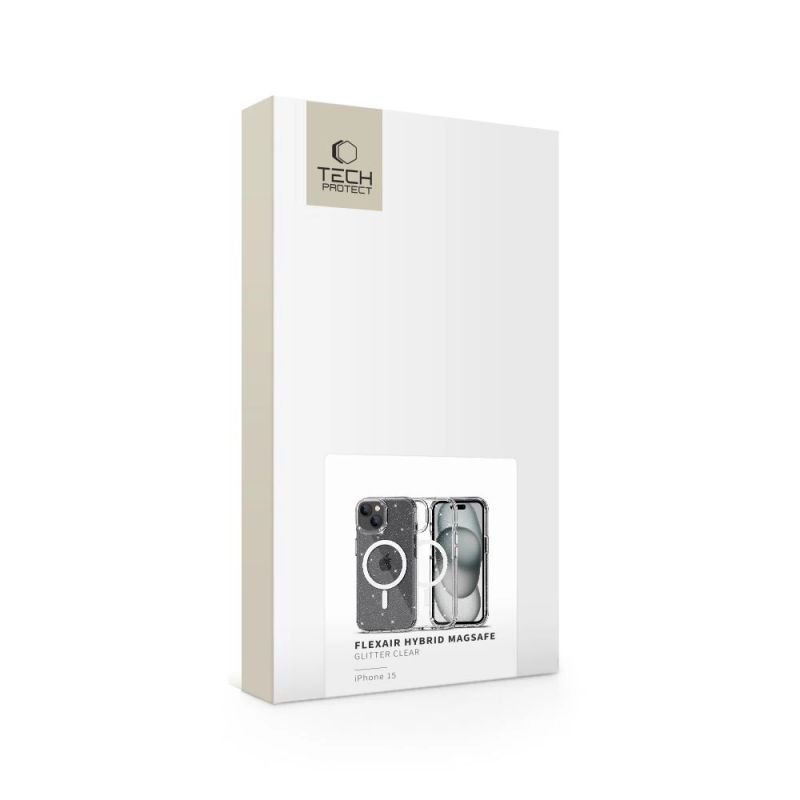 Tech-Protect FlexAir Hybrid MagSafe iPhone 15 Case - Clear Glitter
