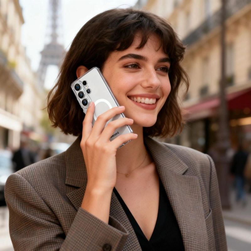 A built-in magnetic ring enables wireless charging and a stable connection to MagSafe chargers, mounts, and wallets without having to remove the case. Magnets hold onto accessories securely, ensuring a secure fit in every situation. The case fits perfectly around the device, providing full access to all external ports and functions. The flexible material ensures a secure grip, minimizing the risk of accidental drops.