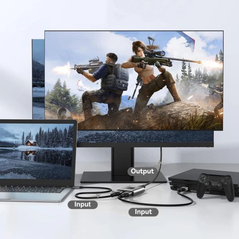 The adapter is equipped with one HDMI input and two HDMI outputs, each supporting 4K resolution at a refresh rate of 60Hz. This allows you to display the same image in the highest quality on two independent receivers simultaneously, without losing signal quality. This is an ideal solution for both home use (e.g. connecting a computer to a TV and projector) and business (e.g. displaying presentations on two monitors).