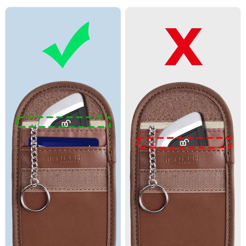 Inside, there is a double layer of protection made of RF material that effectively blocks RFID, EMF, Bluetooth, Wi-Fi, GPS and other radio signals, ensuring that your keys are fully protected from attempts to remotely copy or read them. So, even in the vicinity of potential threats, you can be sure that your car remains safe.