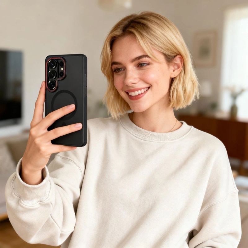A built-in magnetic ring, compatible with MagSafe accessories, allows for wireless charging without removing the case. You can charge anywhere, anytime, without interruption. The case features a metal frame around the lenses, effectively protecting the camera, flash, and sensors from scratches and damage.