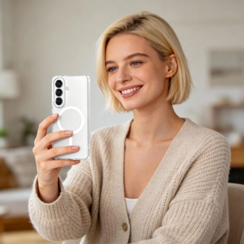 The built-in magnetic ring ensures full compatibility with MagSafe technology, maintaining full access to wireless charging and a stable connection with magnetic accessories. The hard polycarbonate back effectively protects against scratches and mechanical damage while providing an excellent grip. The precise fit ensures the phone remains safe from accidental damage while maintaining full functionality.