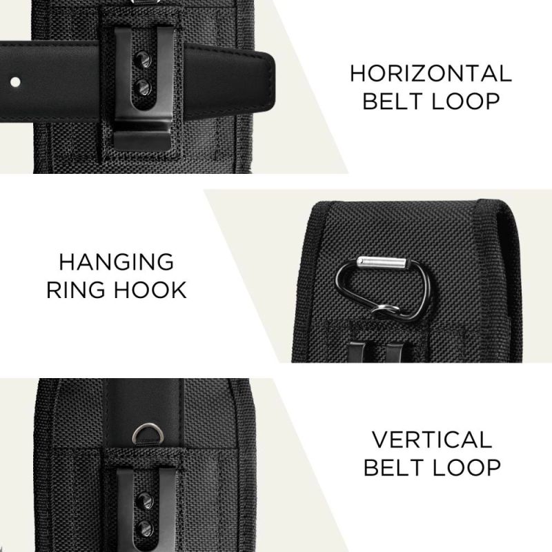 The SM85 offers versatile carrying options. Double-stitched belt loops allow the case to be worn vertically or horizontally, and an included metal carabiner allows the case to be attached to a backpack, bag, or belt loop. This allows users to choose the most comfortable carrying option for their needs.