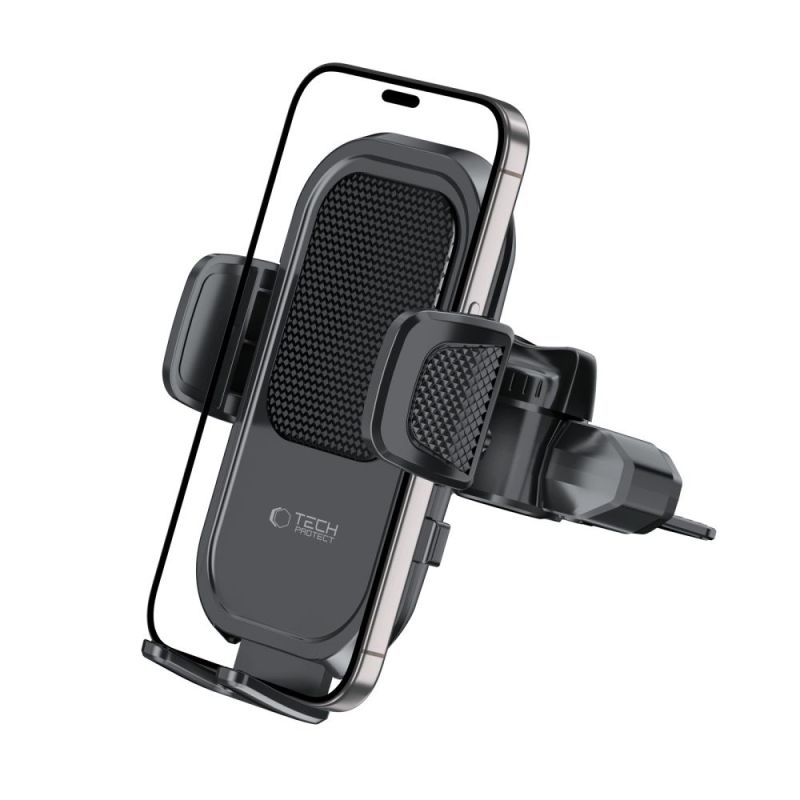 Tech-Protect V8 is a practical car holder mounted in the CD slot or on the air vent. Equipped with a solid clamping mechanism with silicone anti-slip pads, it securely holds devices from 53 to 96 mm wide.