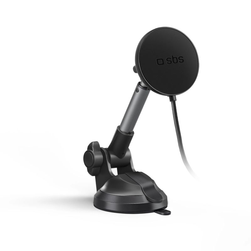 Telescopic smartphone holder with inductive charger SBS TESUPPMAG15WLONGARM with suction cup, compatible with MagSafe - black