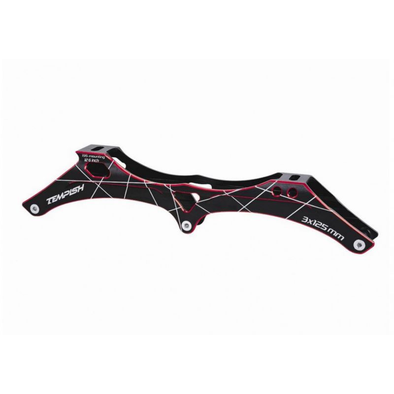 Tempish 3 BW Inline Skate Frames: New TEMPISH frames for 125mm wheels! TEMPISH has redesigned and manufactured the lightest 3-wheel frame with a 125mm diameter. Weighing only 225g, the 4x110mm spacing (WEB - mounted on SPIDER skates) is designed for speed skaters. Sophisticated construction combined with special manufacturing technology and the use of high-strength AL 7005 alloy material guarantees excellent control and stability of the entire skate. Structurally, the frames are designed to increase bending resistance by 25% and torsion resistance by 30% compared to the high-quality and popular WEB frame (4x110mm). Standard mounting is via center screws with an adjustable cross-brace position. They can be equipped with 3 wheels with a maximum diameter of 125mm. Chassis size: 12.6". Mounting holes: 195mm.