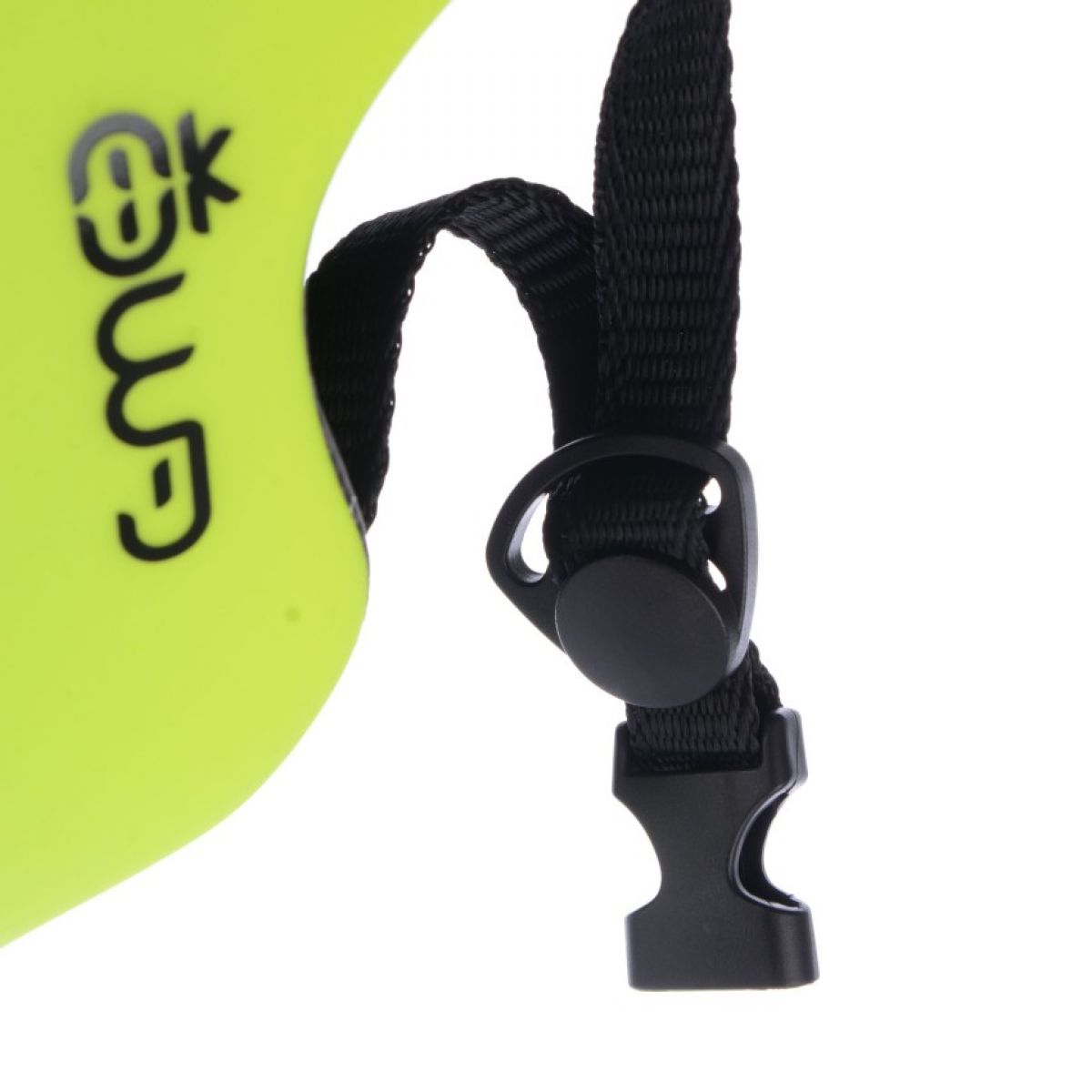 - the helmet is attached to the head with an adjustable strap and fastened with a buckle under the chin.
