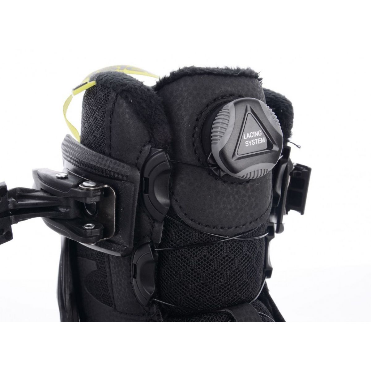 - The upper collar adjusts to the foot with a double buckle with a safety lock.