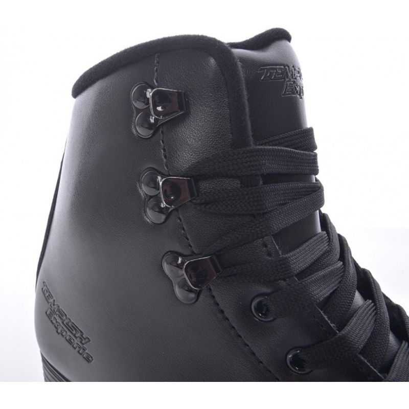 TEMPISH Experie figure skating boots are made of high-quality genuine leather and feature a solid anatomically shaped frame. They provide a perfect fit, especially around the ankle. The new-generation liner made of black velvet T material is abrasion-resistant and has excellent absorbent properties. TECHNICAL SPECIFICATIONS: Intended Use: Competitive, recreational, and fashion skating. Blades: None. Outer Material: Genuine leather. Inner Material: Brushed nylon VELVET - CAMBRA. Anatomical Tongue. Fastening System: Laces. INTEGRAL Thermo lining, anatomical DB120 latex-based memory foam lining in the ankle area.
