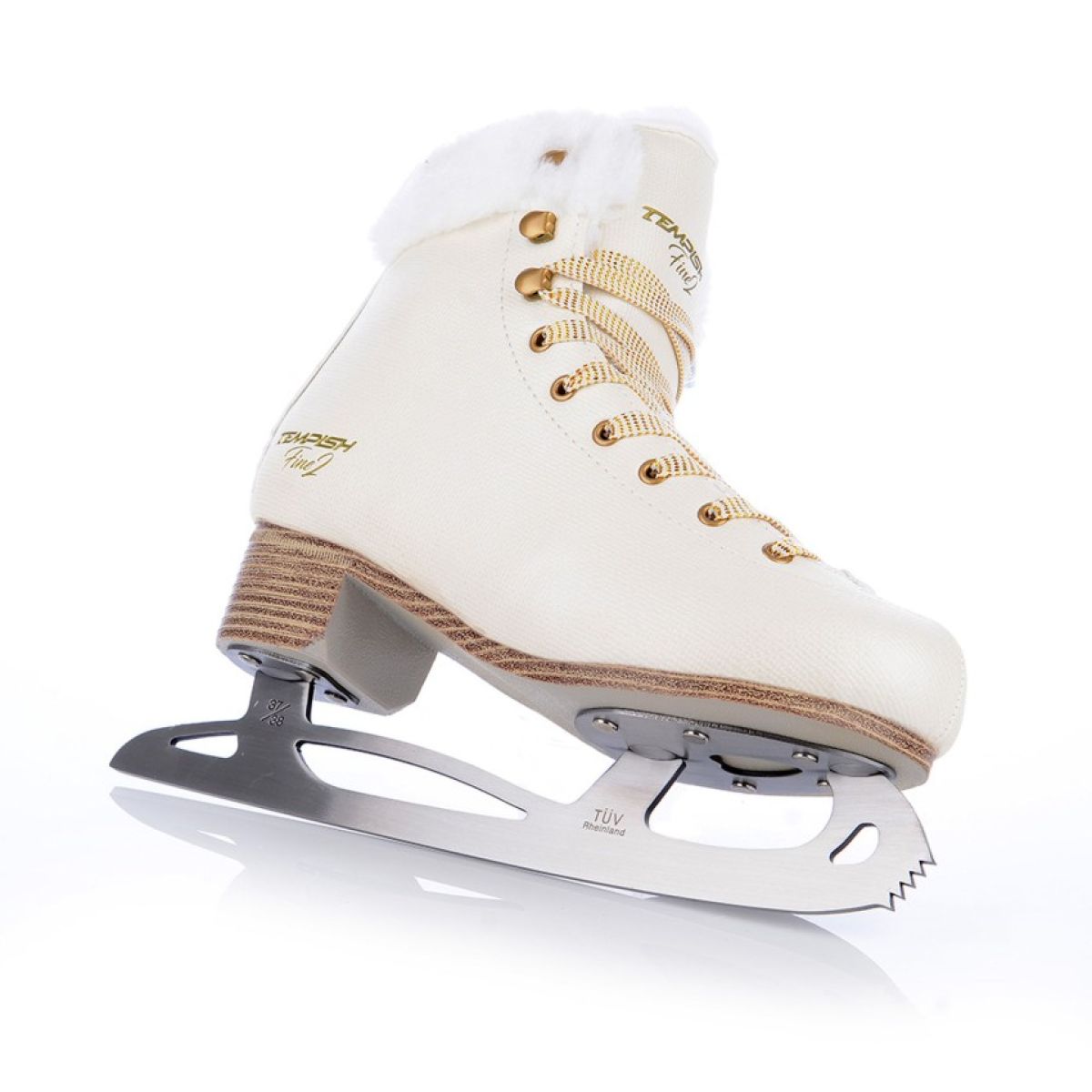 TEMPISH Fine II Figure Ice Skates: Style, Comfort, and Skating Precision: TEMPISH Fine II are elegant figure ice skates that combine timeless design with modern technical solutions. Designed for those seeking comfort and solid workmanship, these skates are perfect for both recreational skating and more demanding skating. Key Features: Elegant Appearance and Durable Construction: Stylish PVC finish with a textured surface ensures aesthetics and resistance to damage. Durable materials resistant to low temperatures and intensive use. Thermal Comfort and Comfort: Soft fur lining on the outside and inside maintain warmth and improve comfort. DB 120 memory foam interior perfectly adapts to the shape of the foot. Skating Precision and Safety: Anatomical ankle support reduces fatigue during extended skating. The TEMPISH WAVE blade made of polished stainless steel guarantees excellent control and durability. TEMPISH Fine II ice skates are the perfect choice for those who value comfort, warmth, and a stylish look on the ice rink. Thanks to its advanced design and high-quality materials, this model ensures stability and precision without sacrificing style. TECHNICAL DATA Recommended use: Recreational skating Outer material: PVC structure with PIMPLE modification, faux fur Inner material: Synthetic wool – thermal insulation and comfort Anatomical ankle: YES Construction: Comfortable fit to the shape of the foot Blade: TEMPISH WAVE, stainless steel, polished Closure system: Laces Lining: DB 120 memory foam