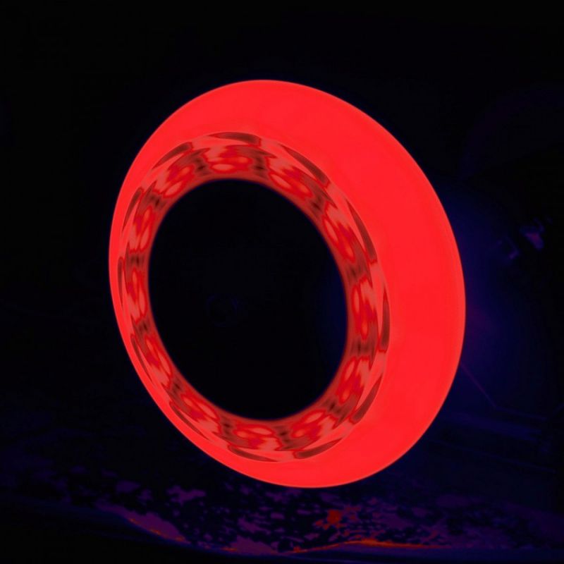Tempish Flashing 76x24 85A Glowing wheels for entertainment Improves driving safety at dusk and in low visibility conditions Material: PU Dimensions: 76 x 24 mm Hardness: 85A Wheels for a standard 8mm axle Shiny stones attached to the wheels Good quality Durable Wheels without bearings Application: recreational riding Packaging: blister Price for 2 pieces