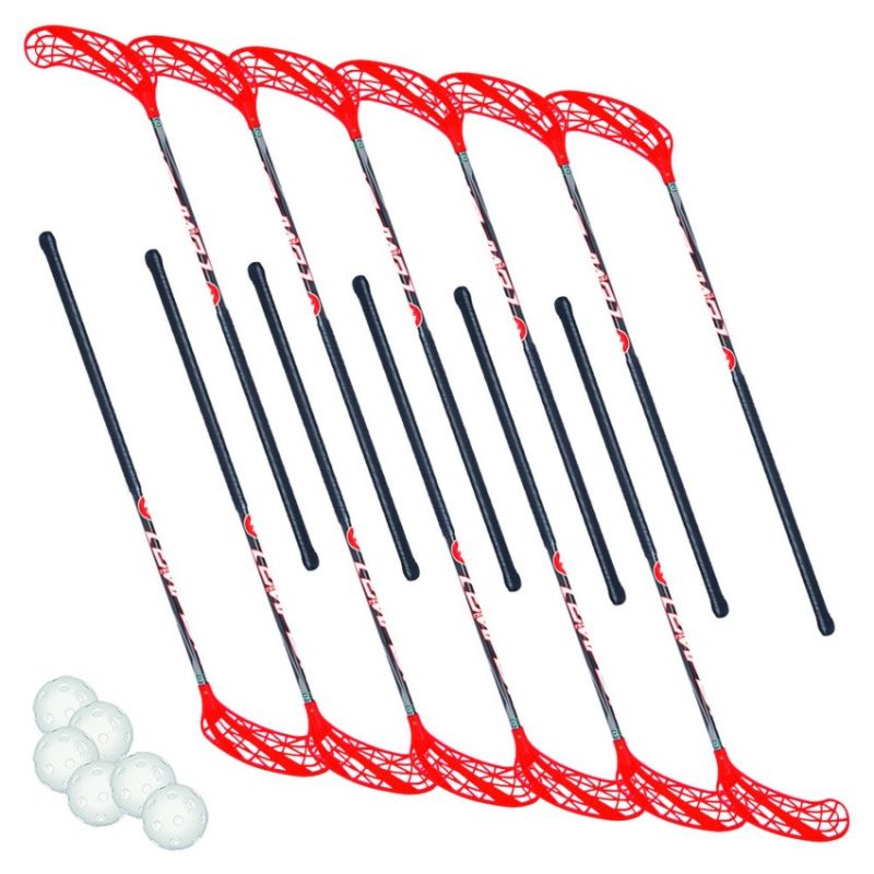The TEMPISH Flow Floorball Stick Set, an officially IFF-certified floorball stick, is ideal for recreational play and beginners. Made of fiberglass and composed of several layers, it offers excellent flexibility and durability. It has a medium-hardness (flex; 28mm) yet sufficient flexibility, demonstrating excellent technical properties. The stick has a classic rounded shape and a Score Grip handle that fits perfectly in the hand. The set includes 12 FLOW floorball sticks (8xL + 4xR) + 6 TRIX balls. Choose from 100cm or 95cm lengths. TECHNICAL PARAMETERS Intended use Floorball, Sr Length 95 cm, 100 cm Hardness (Flex) 28 Material Composite Technologies - Handle shape Conical - ellipse Blade Twenty Blade hardness Soft Grip SCORE IFF certificate Yes Weight 95 / 280 g 100 / 290 g