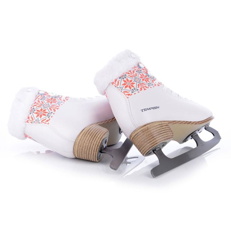TEMPISH Freya II Figure Skates. Classic elegance meets modern design. The TEMPISH Freya II figure skates are a women's model, perfect for recreational ice skating, especially for those who value style and comfort. Key features: Unique design: Made of Cool Resist PVC with a shiny PEARL EFFECT finish, complemented by a subtle print inspired by winter weather. High-quality material: Polished coated steel blade ensures durability and a smooth, confident glide. Comfort and insulation: Anatomical foam padding around the tongue ensures fit and support, while soft faux fur lining provides warmth and comfort even in low temperatures. TEMPISH Freya II figure skates are stylish, comfortable, and reliable skates that will make every ice skating experience a unique experience. Technical Specifications - Figure Skates Recommended Use: Recreational Figure Skating Outer Material: Cool-resistant PVC with a PEARL EFFECT surface finish with a printed, synthetic fur SUPER SOFT FUN FUR on the upper Inner Material: SUPER SOFT FUR - providing thermal insulation Anatomical Ankle: NO Construction: Classic figure skates with a mid-high boot construction. Anatomical tongue with soft lining Blade: TEMPISH new WAVE design, coated, polished steel Fastening System: Laces Lining: SUPER SOFT FUN FUR - providing thermal insulation