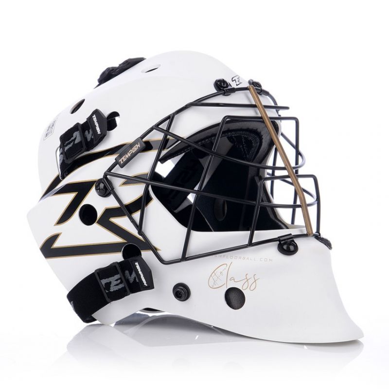 The TEMPISH Class Floorball Goalie Mask is a modern and professional floorball goalie mask, the successor to the popular HERO ACTIV model. Its dynamic design is designed for active movement in the goal area, providing complete freedom of movement and excellent protection. The mask is made of durable ABS plastic, making it an ideal choice for both professionals and ambitious players. Key Features: ABS Material: High-quality ABS plastic ensures durability and the highest level of safety. IFF Certified: The mask is certified by the International Floorball Federation (IFF), confirming its compliance with professional competition standards. Anatomical Padding: Equipped with an adjustable chin guard made of PE material, ensuring a perfect fit. CoolMax Insert: An absorbent CoolMax strap wicks away sweat, ensuring comfort during play. Ventilation: Carefully placed ventilation holes increase airflow and comfort. Protective Mesh: High-quality steel mesh protects the face and eyes while providing excellent visibility. Neck Protection: The extended chin strap provides additional protection for the neck. Adjustable Straps: The mask features elastic straps with rubber tips for easy adjustment and a perfect fit. The TEMPISH Class is an excellent choice for any floorball goalie looking for reliable protection, comfort, and a perfect fit for dynamic play.