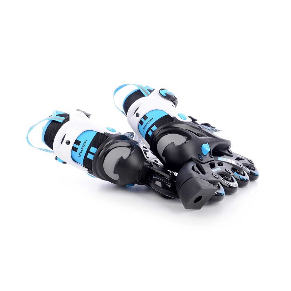 - The skates have a simple and convenient size expansion system using a button on the side of the frame.