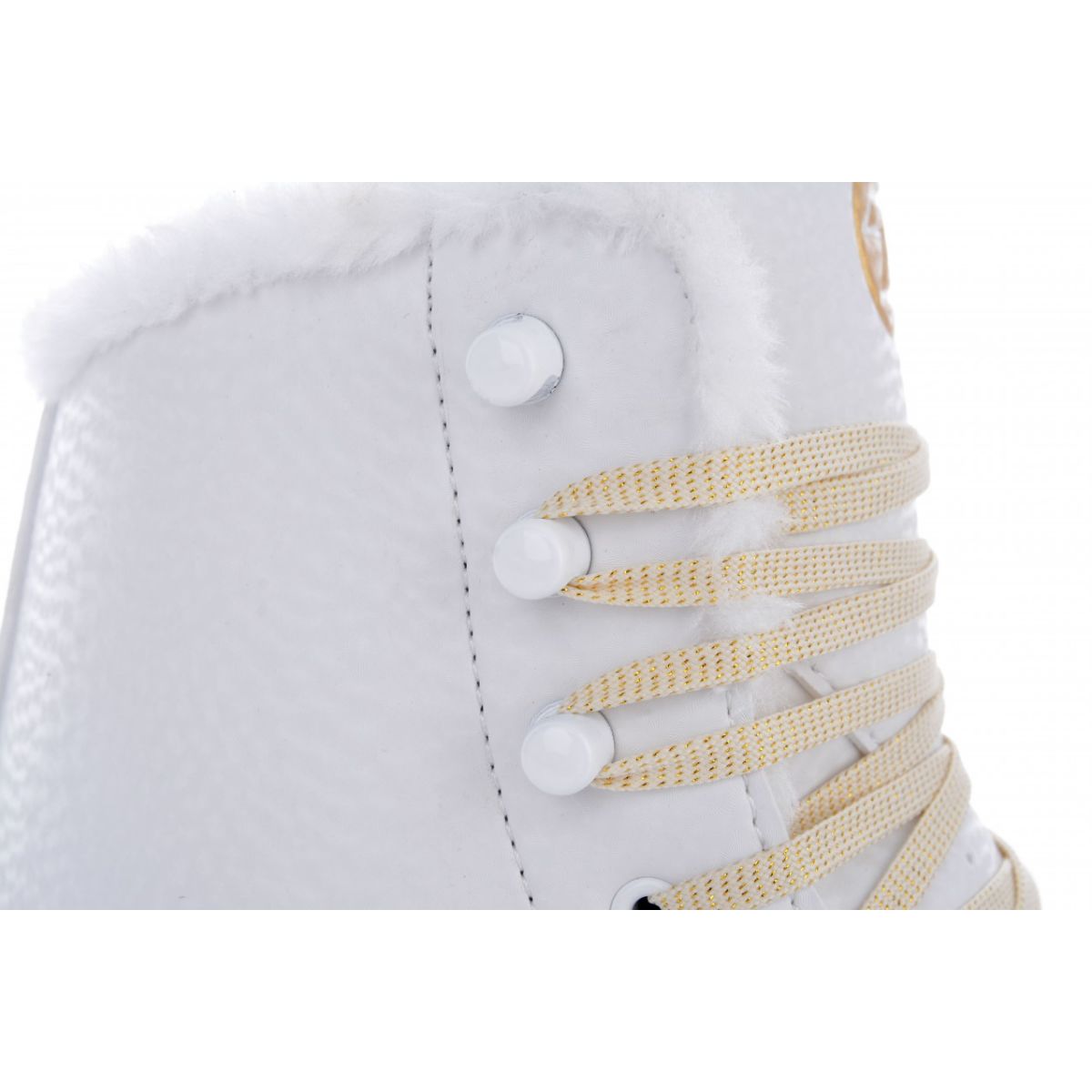 - The boots are made of high-quality polyurethane-based synthetic material with a spectacular 3D surface treatment and six shiny stones that give the skates a luxurious look.