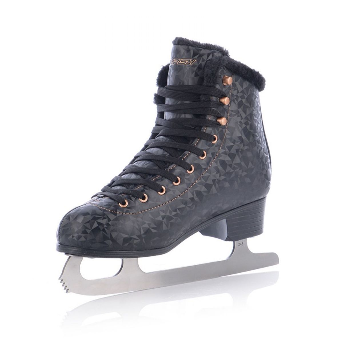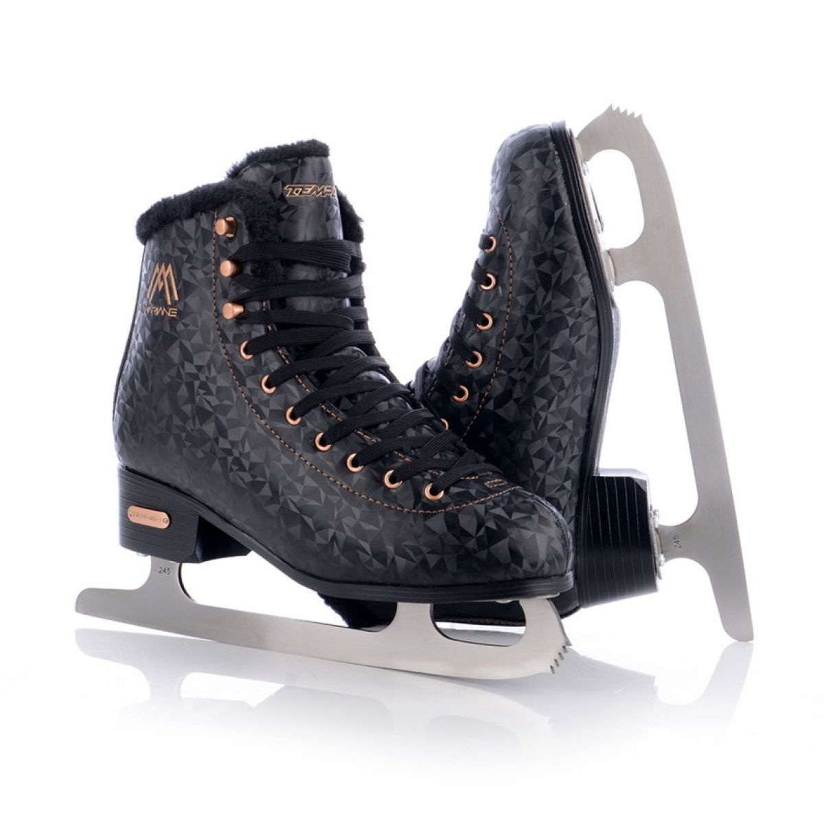 TEMPISH Mariane Women's Figure Skates. This women's ice skate model stands out for its elegance and high quality, designed specifically for discerning skaters. They are the perfect choice for those seeking not only aesthetics but also comfort and functionality. Key Features: Material and Construction: The boot is made of high-quality PU-based synthetic material and features a striking 3D finish, giving the skates a premium look. The anatomical shape around the ankle ensures optimal fit, increasing comfort and stability while skating. Inner Lining: This new-generation material is soft to the touch and has excellent insulating properties. This ensures comfort and warmth even in low temperatures. Blades: The skates are equipped with solidly welded coated steel blades, guaranteeing durability and long-lasting sharpness, essential for precise figure skating. TEMPISH Mariane ice skates combine stylish design, solid construction, and the highest level of comfort, meeting the expectations of even the most demanding skaters. TECHNICAL PARAMETERS Intended use: Competitive, recreational, fashion riding Blades: Classic, coated steel Outer material: PU LAXY 3D Inner material: SUPER SOFT FUN FUR Tongue: Anatomical Fastening system: Laces Lining: IINTEGRAL thermo-anatomic with latex-based memory DB 320