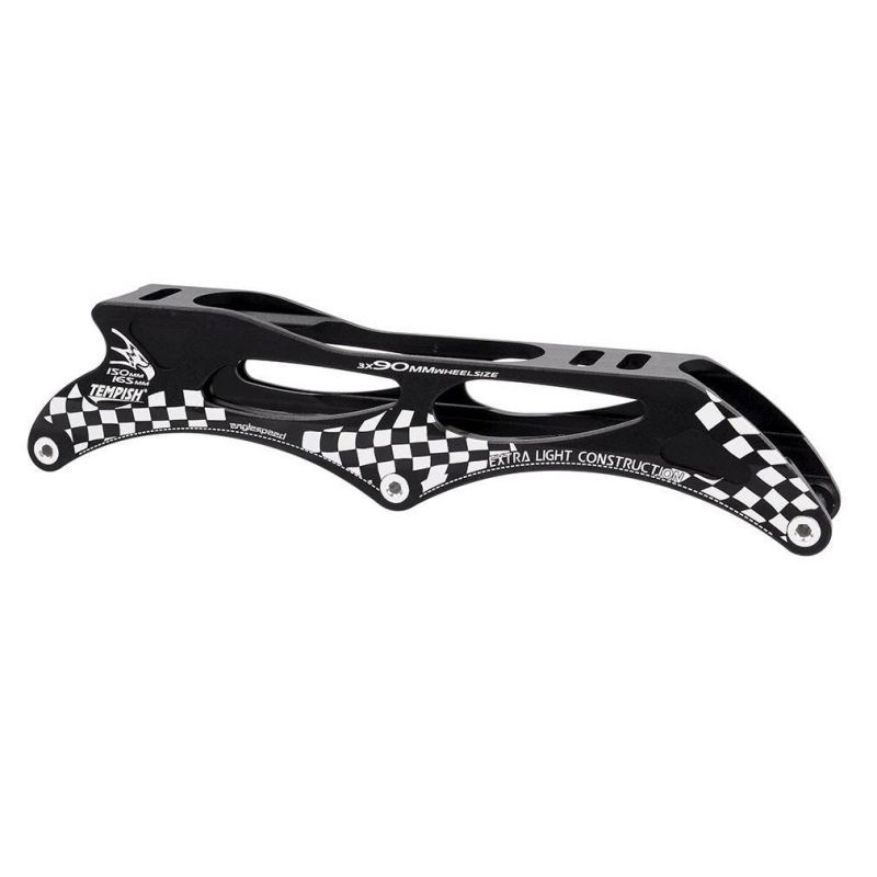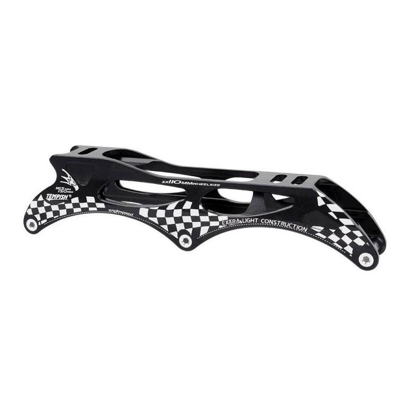 Tempish Chassis Schell 3 frame, with three 90/100/110mm wheels, mounting hole spacing: 150-165mm. SCHELL frames are very strong and easy to control. Made of AL 7000 alloy. Key features: Intended use: Speed, inline skating for advanced, experienced skaters. Lite monolith frame, 3D construction, special duralumin alloy, fixed center position with adjustable screws, HI-POLISH ALUX surface finish.