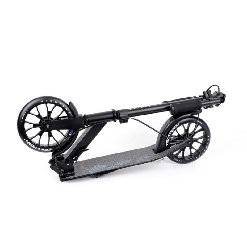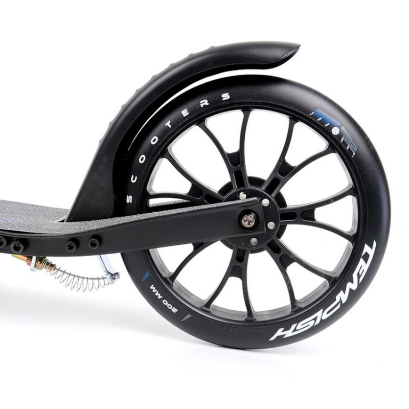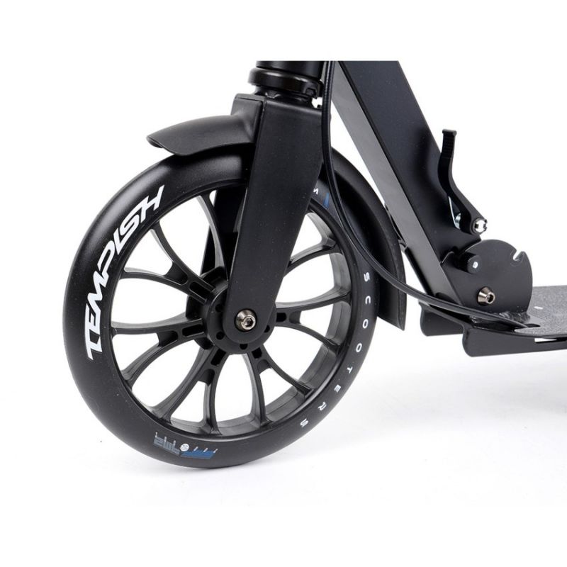 TEMPISH SMF 200 R Scooter The TEMPISH SMF 200 R is a robust and comfortable city scooter, ideal for both youth and adults. Its design combines functionality with comfort, making it perfect for commuting to school or work, as well as for recreational rides. Key features: Advanced braking system: Equipped with a hand-operated rear brake controlled by a lever on the handlebar and a classic foot brake in the form of a fender for added safety. Stable and foldable design: A convenient folding system with a large clamp and foldable kickstand allows for easy storage and transport of the scooter. Adjustable handlebar and comfortable grips: The quick-release handlebar allows for height adjustment to the user's height, while the foam grips provide a comfortable grip while riding. Large 200 mm wheels: Made of durable polyurethane, they ensure fast and smooth movement and good shock absorption on uneven surfaces. The TEMPISH SMF 200 R scooter is a versatile scooter that combines speed, comfort, and safety, perfect for everyday use by people of all ages. TECHNICAL SPECIFICATIONS: Material: Aluminum Alloy, Wheels: 200mm, Bearings: ABEC 5, Brake: Right-handed operation, Handlebars: Deluxe 80AB, Axles: Deck Length: 520mm, Deck Width: 115mm, Handlebar Height: 814-894mm, Weight: 4.8kg, Weight Limit: 100kg, Clamp: Aluminum, 2-bolt, Handlebar: Adjustable, Width: 350mm, Headset: Threaded