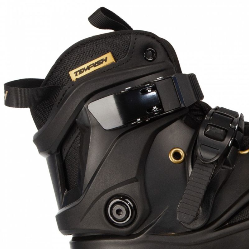 The TEMPISH VIBER LE 110 Freeskates combine a hard boot with fast, large 110mm wheels for a perfect combination. Designed for both shorter city rides and long trail rides, these skates are perfect for advanced and experienced skaters. Thanks to high-quality materials and meticulous craftsmanship, these skates deliver not only excellent performance but also maximum comfort and safety on every ride. Key Features: Boot: Made of a hard, composite material that provides firm foot support and stability while skating. It features a ventilated insole for air circulation and comfort. Fastening: Equipped with a metal self-locking buckle and a micro-buckle system on the instep strap for a precise and comfortable fit. Frame/Shade: Heavily reinforced CNC-machined chassis with lateral and longitudinal adjustment, mounted on sturdy aluminum blocks with screws. Wheels: Three 110mm diameter wheels for high speed and stability. Made of PUC with a hardness of 85A, they offer excellent grip and durability. Bearings: High-quality chrome ABEC-9 bearings with a rubber cover for easy cleaning and maintenance. Customization: The plastic outer protectors and instep strap can be replaced. Smaller wheels can be installed in the chassis (minimum recommended size: 90 mm). Liner: Ventilated liner with a neoprene toe area for increased comfort. An elastic tongue loop makes putting them on easy. The TEMPISH VIBER LE 110 skates are an excellent choice for advanced skaters seeking a combination of durability, stability, and speed. Their robust construction, innovative technological solutions, and customization options make them suitable for both urban adventures and long trail rides. TECHNICAL SPECIFICATIONS: Intended Use: Street (urban) and freestyle skating, for advanced and experienced riders. NC frame, additionally reinforced, one-piece, adjustable laterally and longitudinally. Wheel size: 110 mm. Wheel hardness: 85A. Bearings: 608, ABEC 9. FitGo lacing system. Shoe shell: Hard composite. Liner (inner sock): Thin nylon, absorbent microfiber. Under the lining in the heel section, a shock-absorbing silent block made of TPR material, which perfectly absorbs vibrations and shocks, is quite thick, soft, and comfortable. Brake: None. Top closure: Buckle. 45-degree closure. Buckle. 6mm axles. Weight limit: 100 kg.