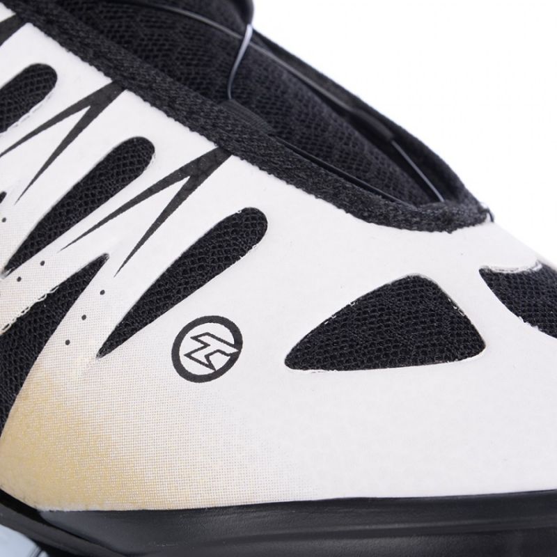 - PE/NYLON shoe shell, two-piece, anatomical ankle space, reinforced raised structure.