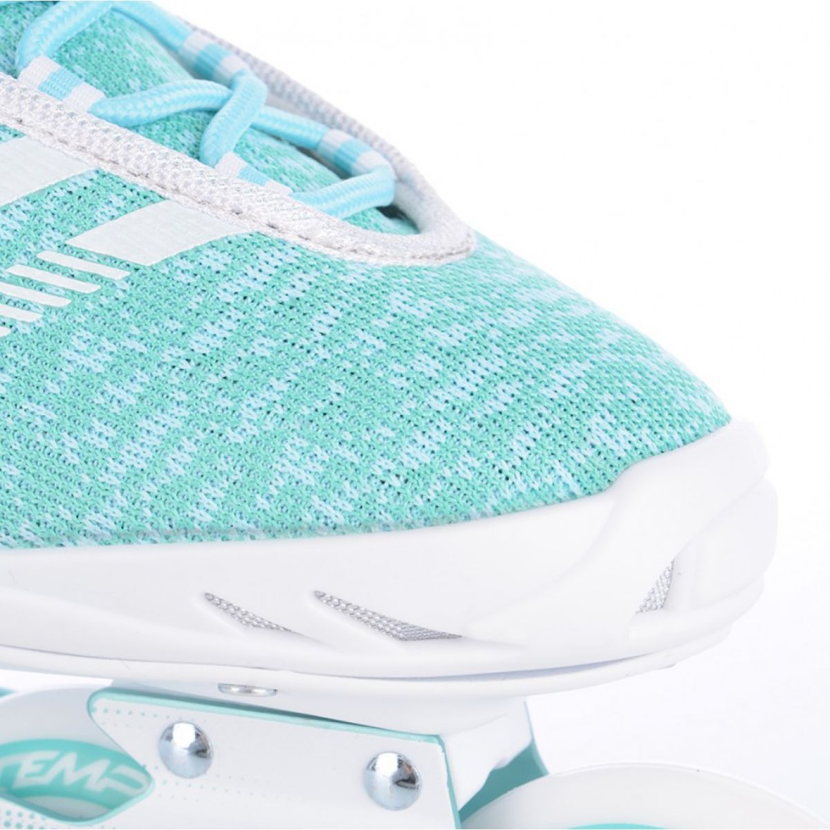 - The roller skates are equipped with CATCH series wheels, which are characterized by exceptionally low rolling resistance.