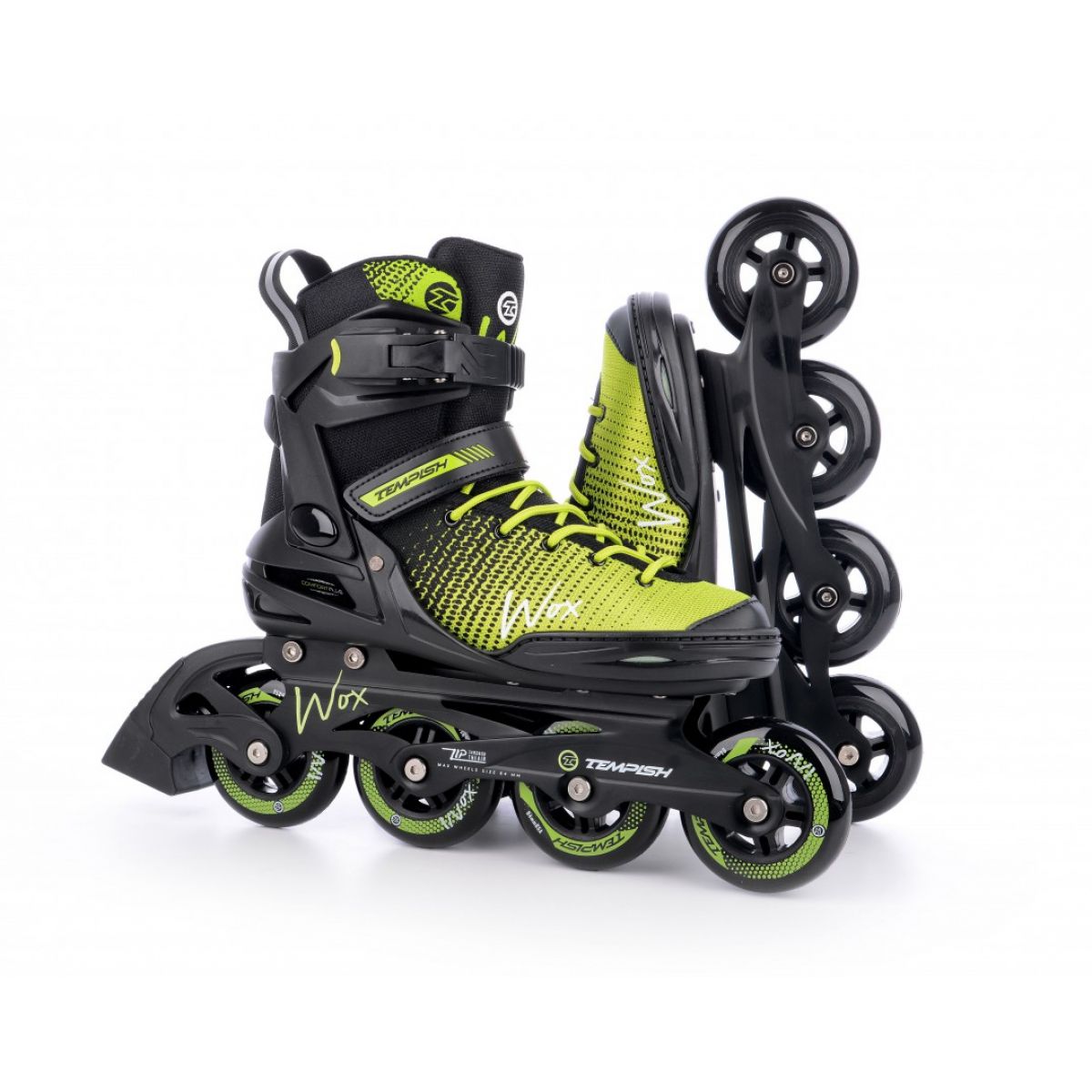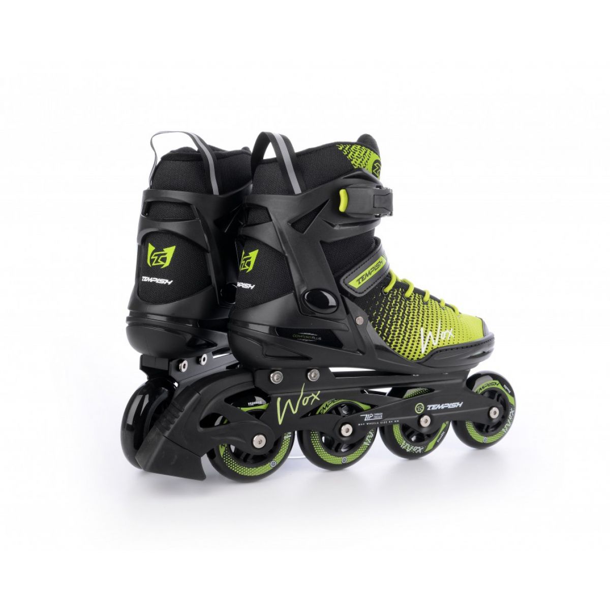 - The skates are fastened with classic laces and Velcro straps on the instep to securely secure the foot to the frame. The upper part of the frame is fastened with a strap with a micro-buckle.