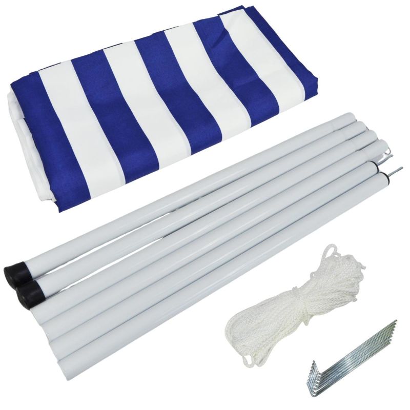 - equipped with metal posts supporting the sail at the appropriate height