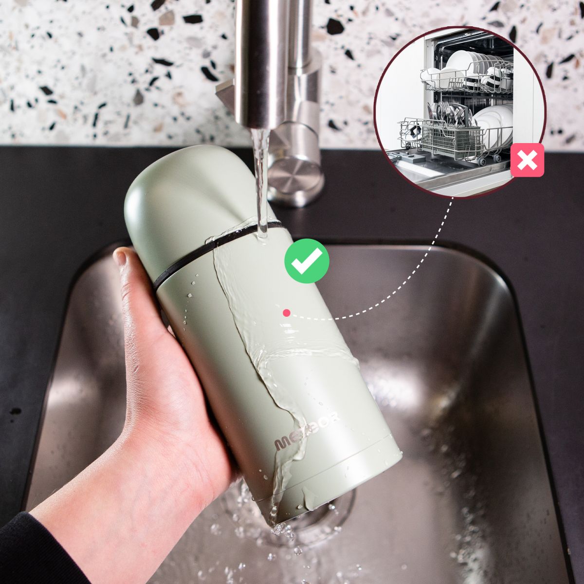 Safety – The thermos' stainless steel construction ensures safe use and easy cleaning. 18/8 stainless steel is food-safe and corrosion-resistant. The powder-coated finish provides increased resistance to damage, ensuring the thermos retains its aesthetic appeal for a long time. The inner cap features an additional silicone seal, ensuring the thermos maintains a 100% leak-proof seal. Be confident in your investment!