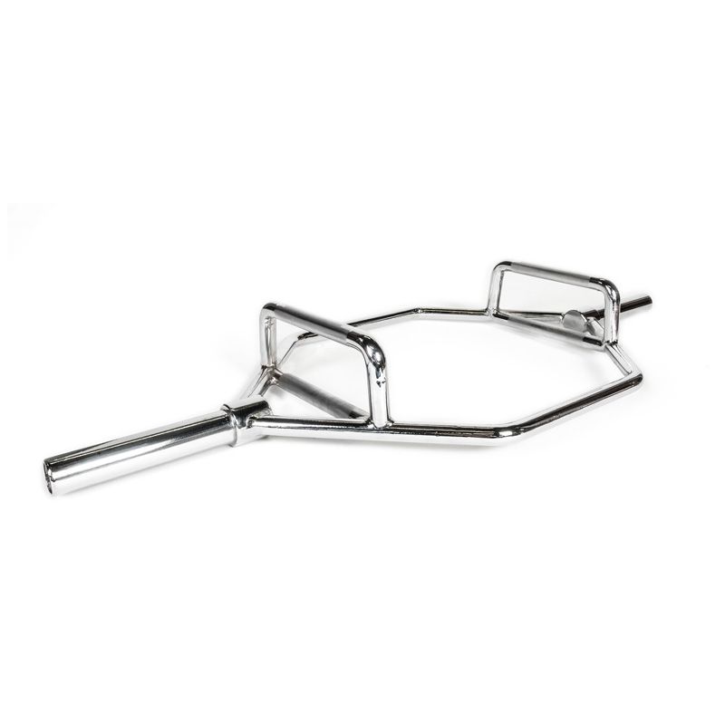 - High-quality hex bar weighing 26.4 kg, 140 cm long, chrome-plated, silver, with a load capacity of up to 315 kg.