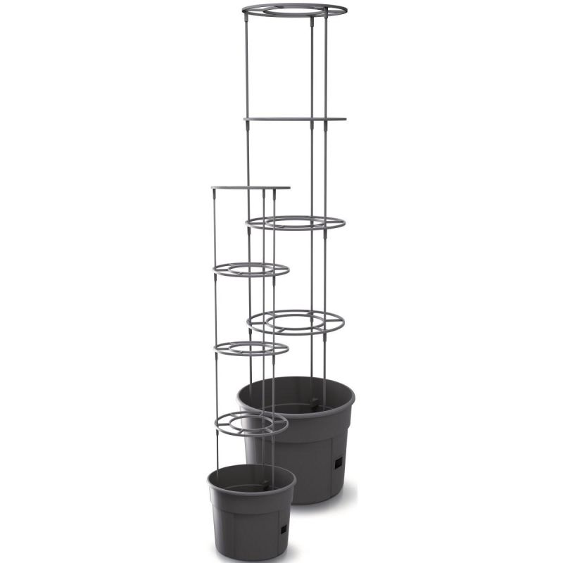 - The set includes 21 pieces: 1 pot, 1 watering tray, 3 post supports, 4 rings, 12 posts