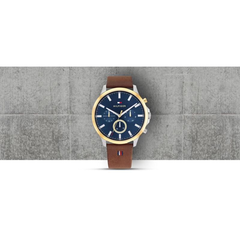 The Tommy Hilfiger Ryder 1710496 Men's Watch is equipped with a working chronograph: 12/24h time - displaying the time taking into account the whole day allows you to distinguish between hours before and after noon, and a date window for the days of the week and the month.