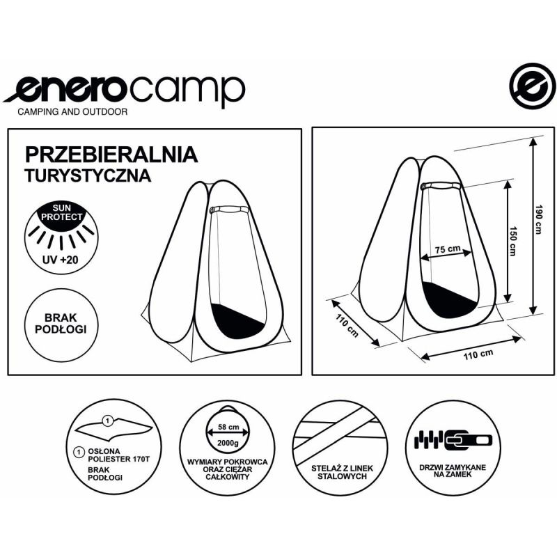 The dimensions of the tent will allow you to comfortably change, for example, wet clothes into dry clothes, dry yourself with a towel, wash yourself using a tourist shower or use a portable tourist toilet.