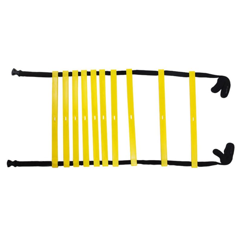 TRAINING LADDER NO. 10 AGL-FF08 8m. Made of carefully selected materials, simple and convenient to use, it improves fitness and agility, enhances concentration during tasks, and improves coordination. With this speed training ladder, you can practice stepping precision and regularly increase your speed. You can climb the ladder by running or jumping. Plastic rungs - beveled (tubes). Length: 8m. Packaged in a handy carry case. Length: 8 m, Width: 42 cm, Color: yellow, Number of rungs: 20. Made of strong, colored PVC (rungs) and black polyethylene tape. Ideal for combining various exercises that develop footwork. Designed for training athletes and beginners. Suitable for all age groups, children and adults.