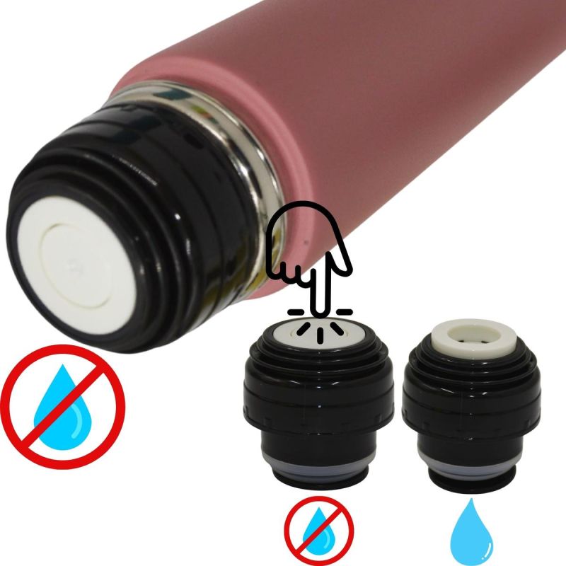The thermos has a special automatic cap, so you can pour liquids in the classic way by unscrewing the entire cap or quickly without unscrewing it by pressing the OPEN/CLOSE button.