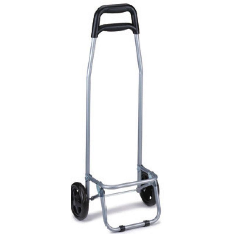 The metal frame provides strength and stability for transporting even heavier purchases. It's designed to accommodate grocery bags and even larger items, eliminating the need to carry them by hand.