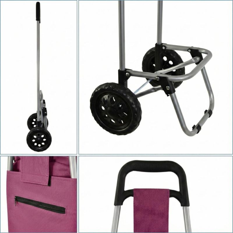The shopping cart with a bag features a foldable frame for easy storage when not in use. When folded, it takes up minimal space, making it easy to store at home, in the car, or even in a closet.