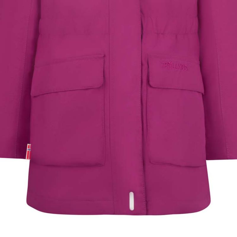 6. Trollkids Girls Alesund Coat Waterproof Pink Down Jacket (301-235)