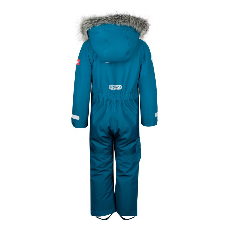 This children's snowsuit provides warmth and durability on winter days thanks to materials like a fleece lining and ripstop reinforcements. Reflective elements enhance safety.