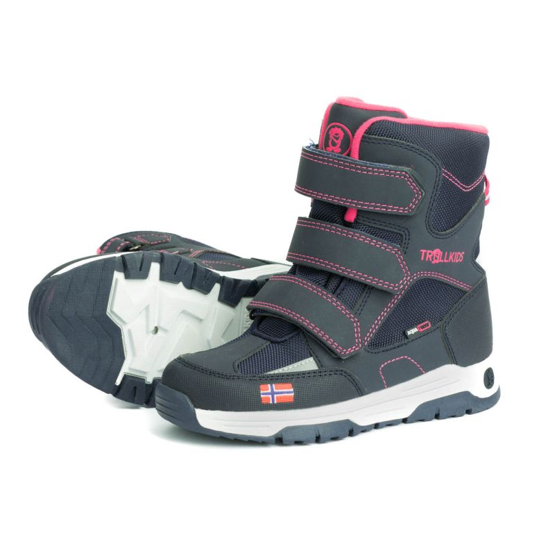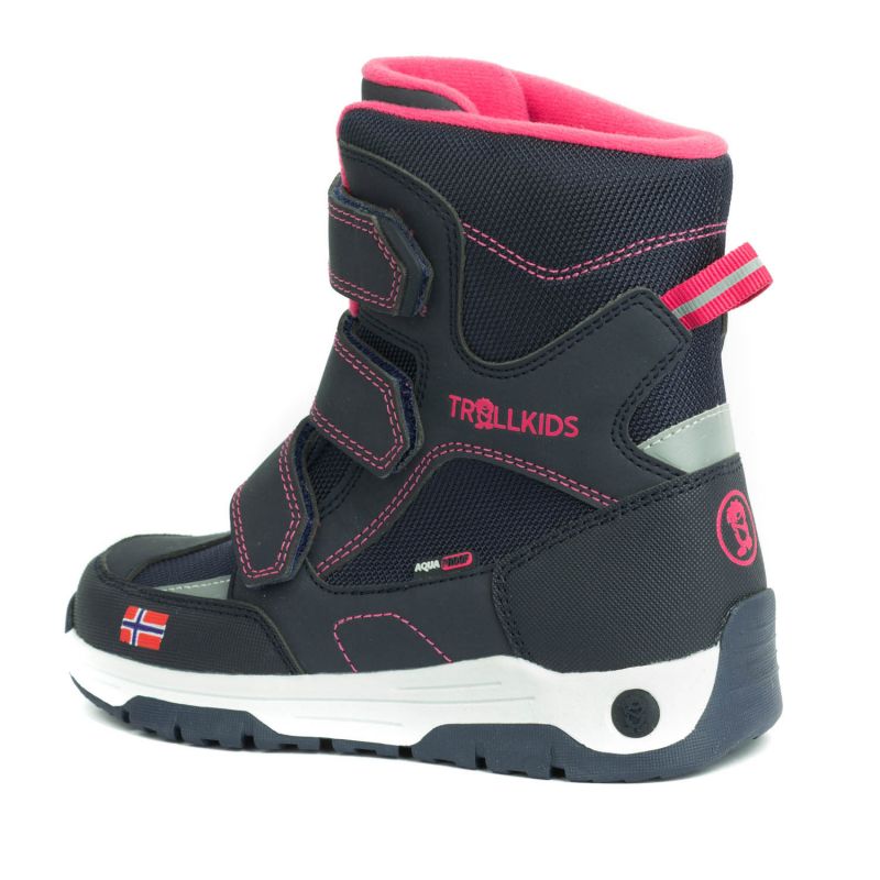 These children's winter boots feature a synthetic and mesh upper, offering breathability and warm fleece insulation. A rubber sole provides traction, and reflective elements enhance safety.