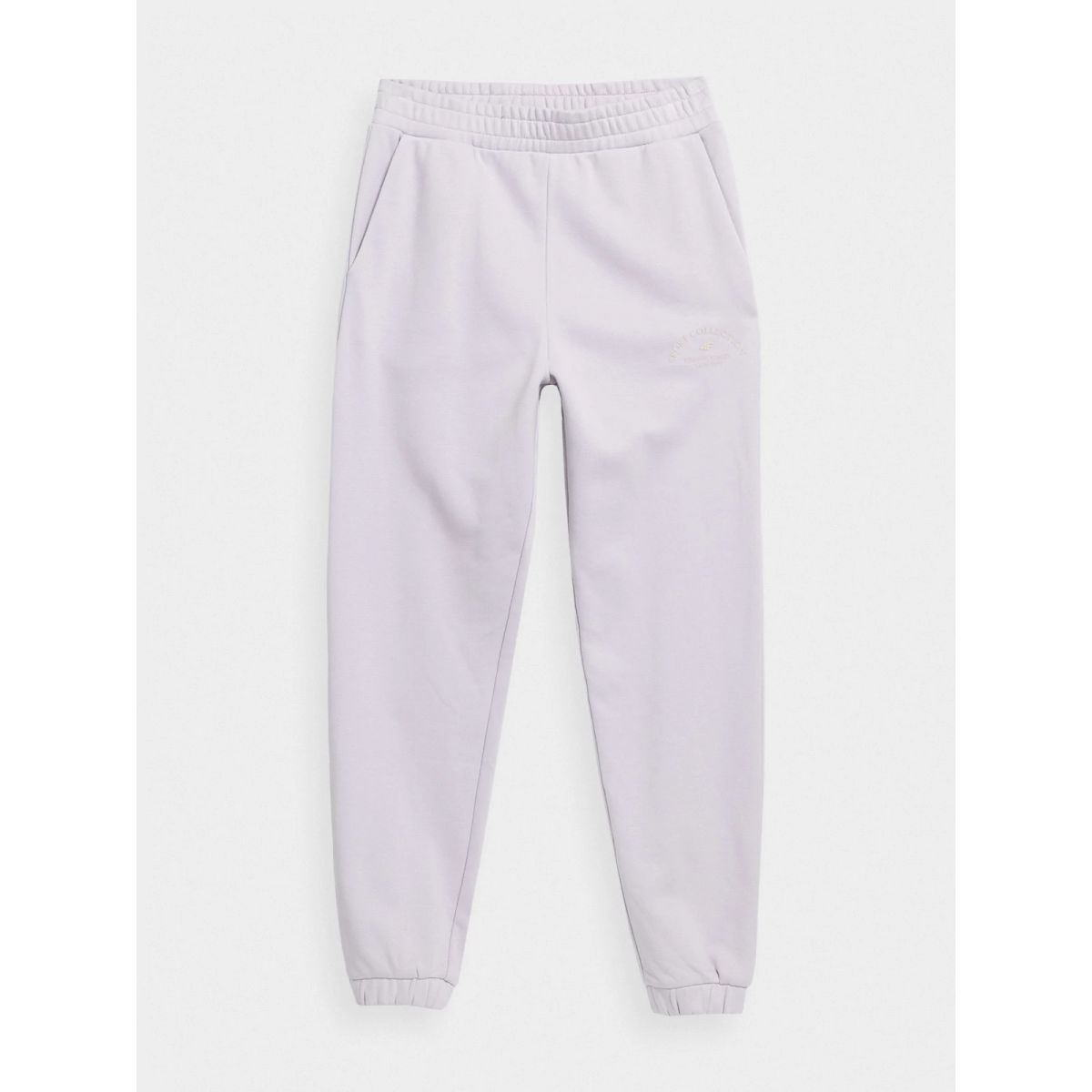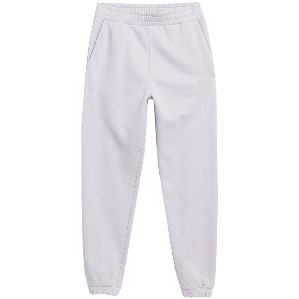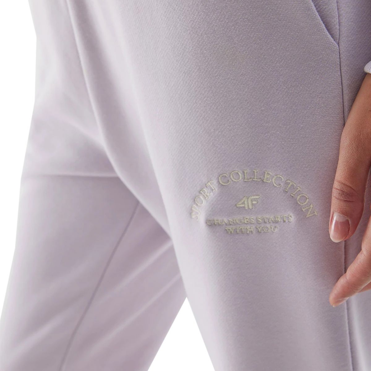 These 4F women's pants are perfect for everyday wear. They're unlined. They feature a non-adjustable elastic waistband. They feature two open side pockets. They have wider, straight legs with elastic cuffs. Embroidered "Sport Collection 4F Change Starts with You" on the leg. They're made of a soft, cotton-rich fabric. Made with recycled fibers (the main fabric contains 13% recycled polyester).
