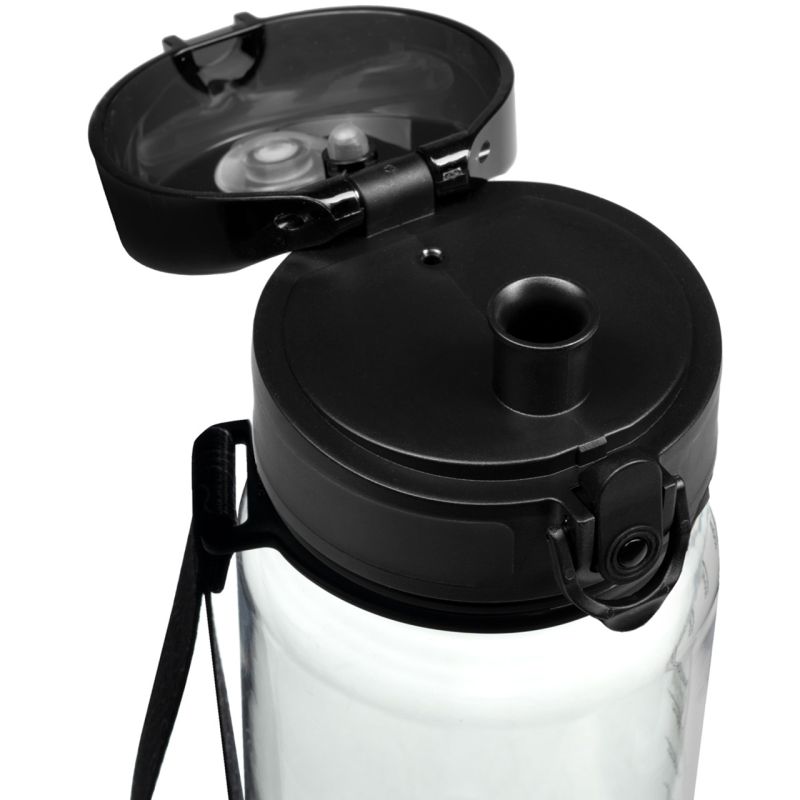 - · removable wrist loop · filter strainer · does not absorb odors · resistant to low and high temperatures · has a comfortable mouthpiece · cap with a locking clip that prevents the drink from spilling ·