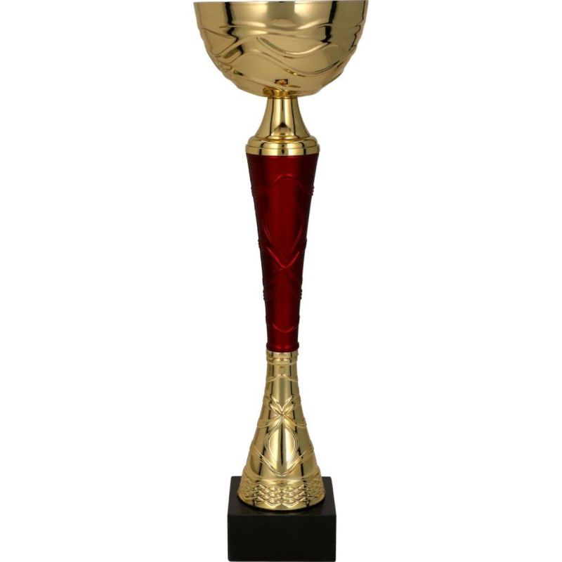 A classic gold-and-red trophy design. Its small, wave-shaped bowl and beautifully decorated narrow stem lend it a subtle touch. It's perfect as a trophy for various events.