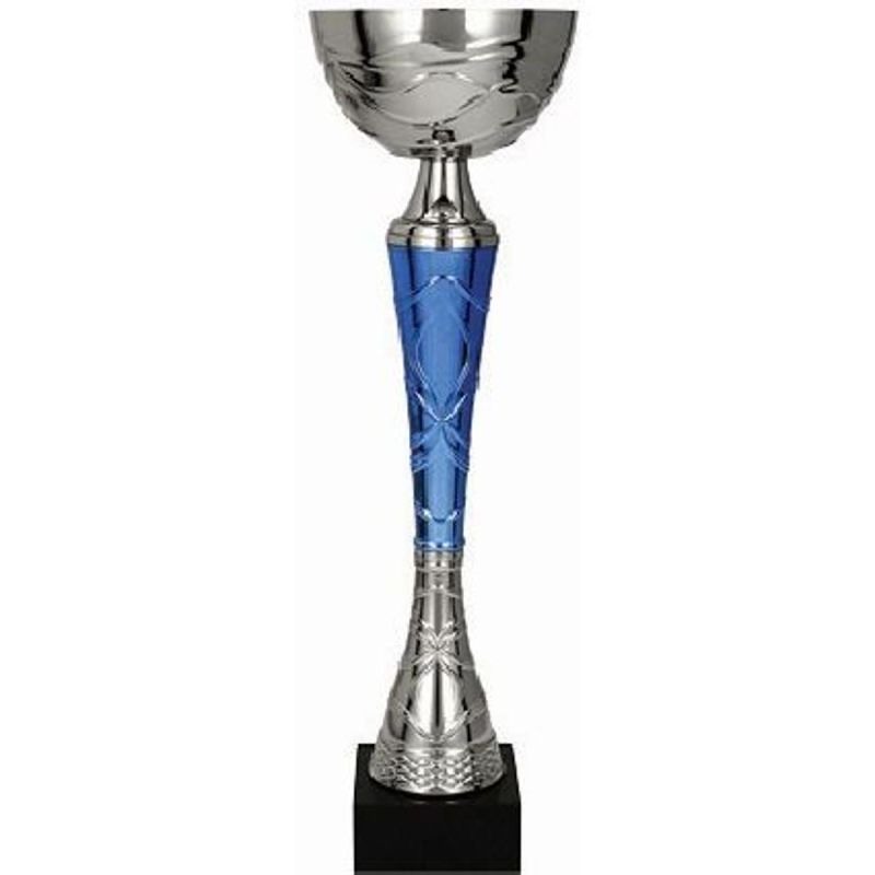 A classic silver-and-blue design. Its subtle touch is enhanced by a small, wave-shaped bowl and a beautifully decorated, narrow stem. It's perfect as a trophy for various events.