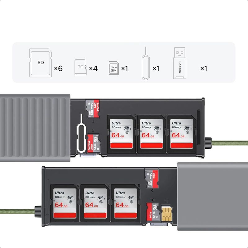 Ugreen 2-in-1 memory card reader with organizer - gray