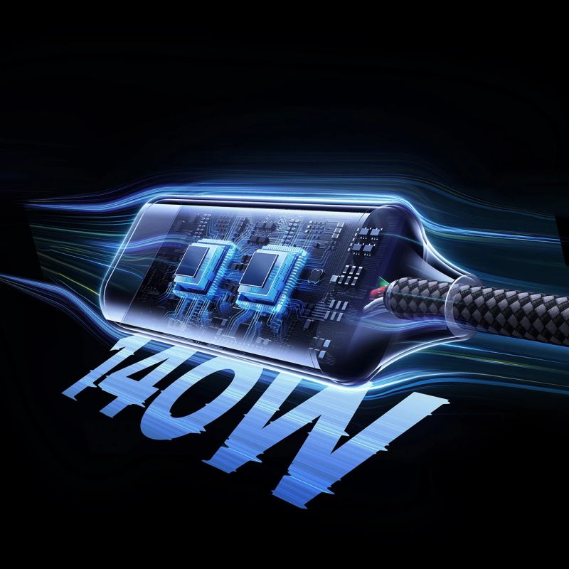 The cable supports Power Delivery fast charging up to 140W, so it easily powers laptops, tablets and smartphones without sacrificing performance.